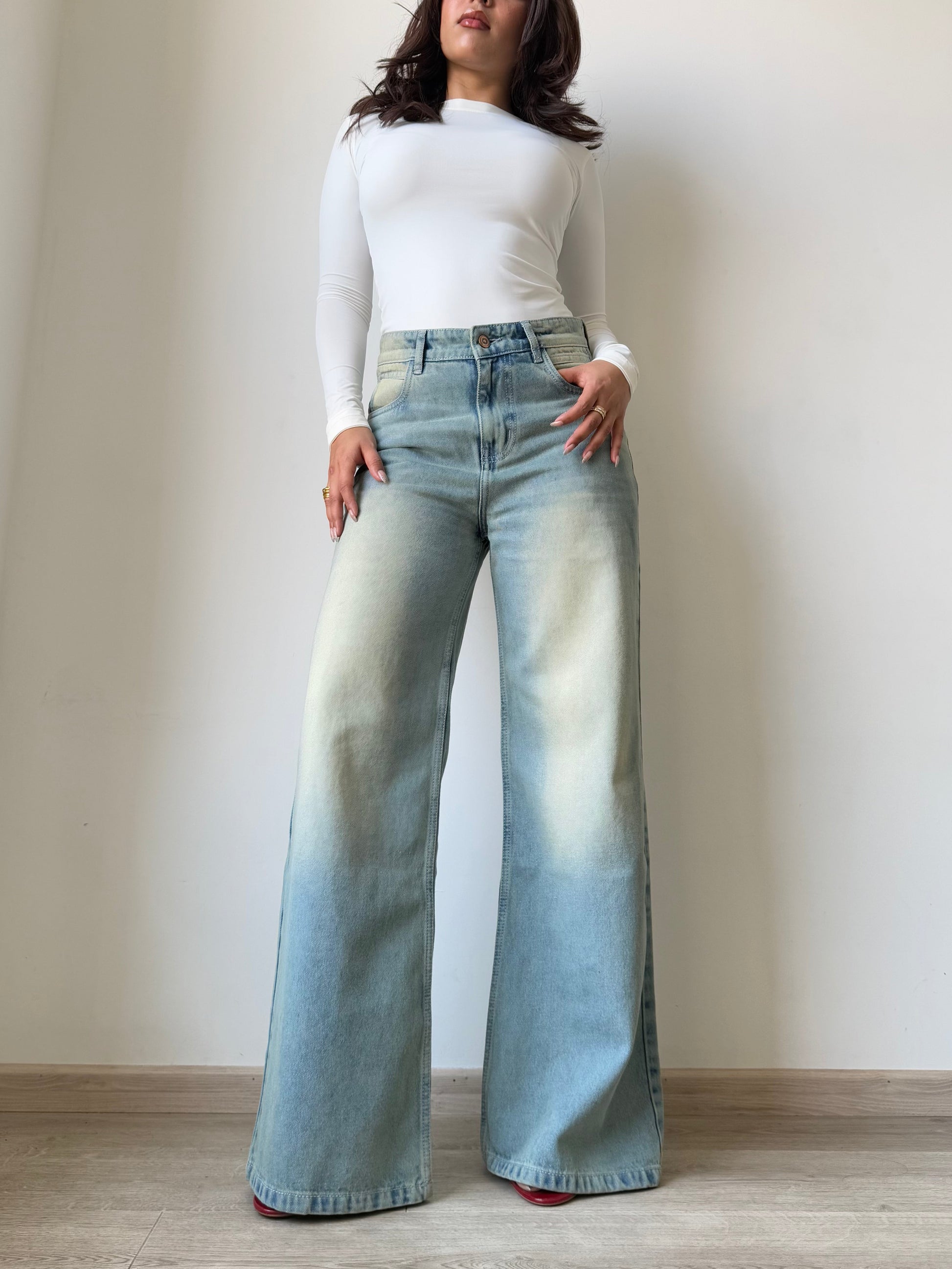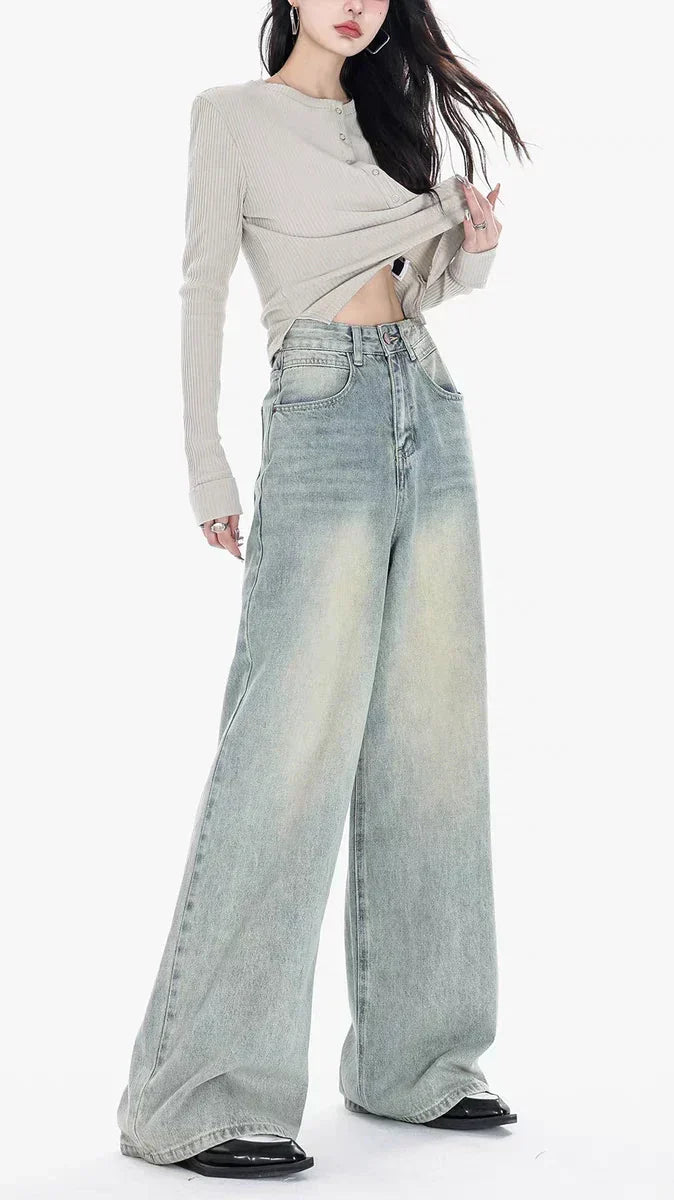 Blue Vintage Yellow Tinted Wide Leg Jeans
