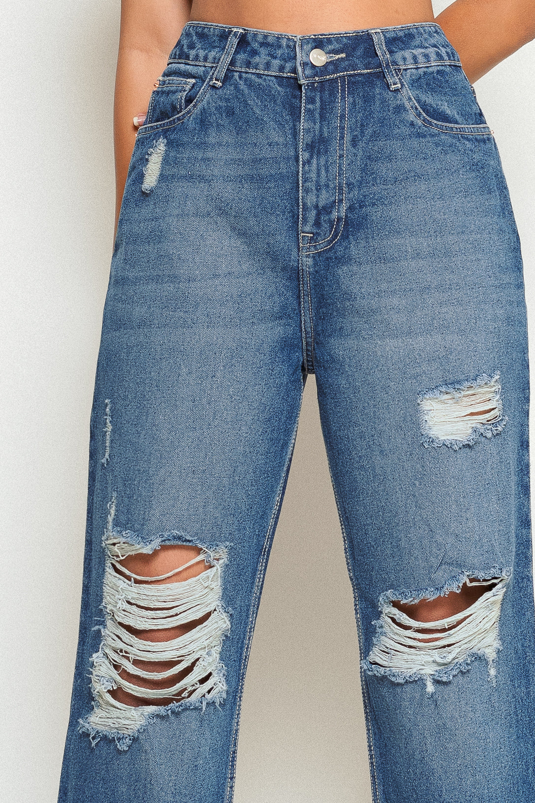 Nuon Blue Ripped Relaxed-Fit High-Rise Jeans